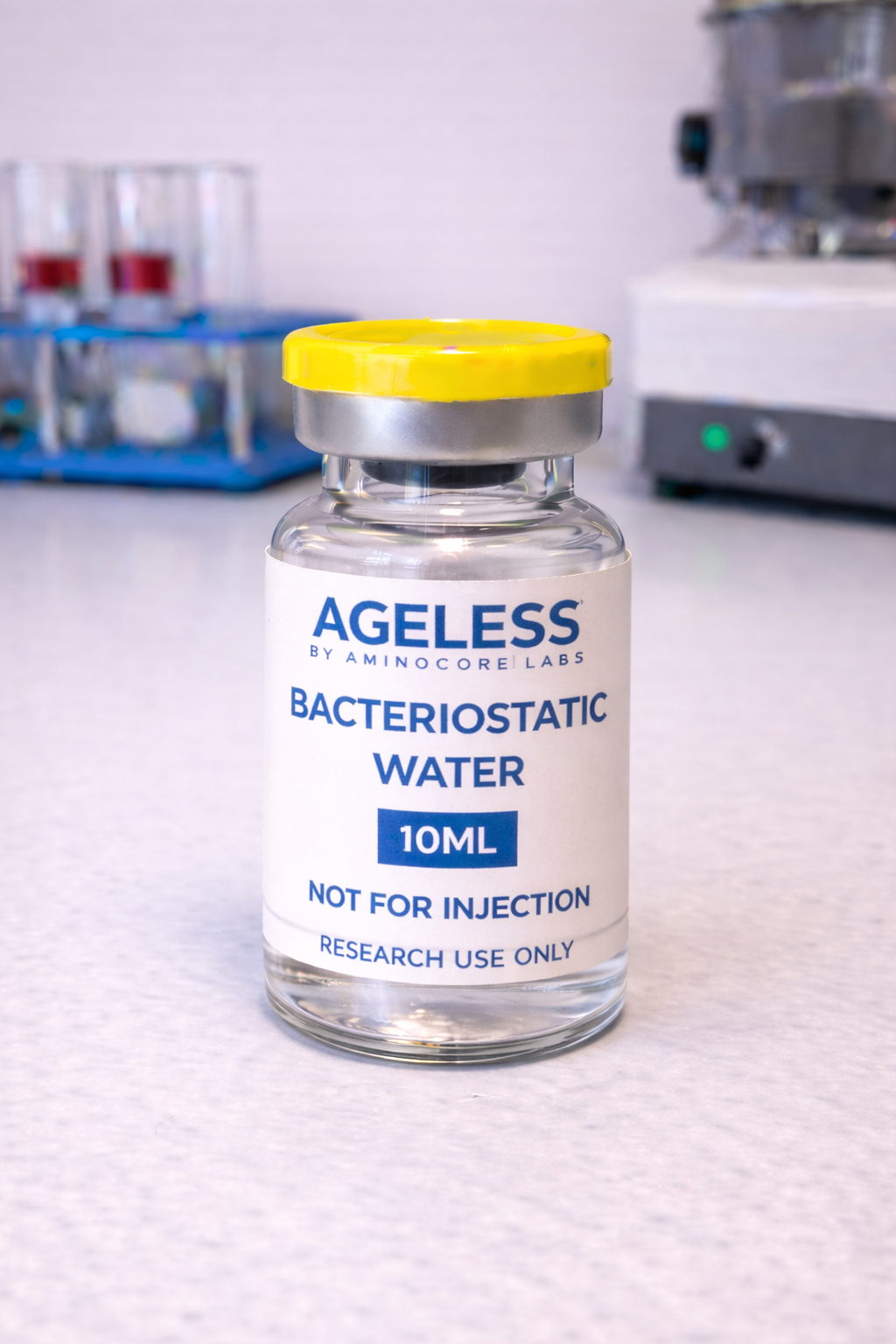 Bacteriostatic Water for Injection (USP) preserved with 0.9% benzyl alcohol in a larger 10mL vial. Ideal for users reconstituting multiple peptide vials or protocols requiring higher volumes.